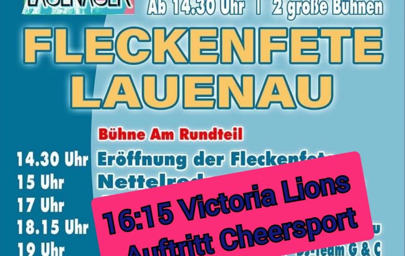 Erlebt den ersten Auftritt unserer Cheersportler auf der Fleckenfete Lauenau am 19.8.29023: Sie werden zeigen, was nach rund 6-wöchigem Training seit Gründung der Abteilung bereits gelernt wurde.