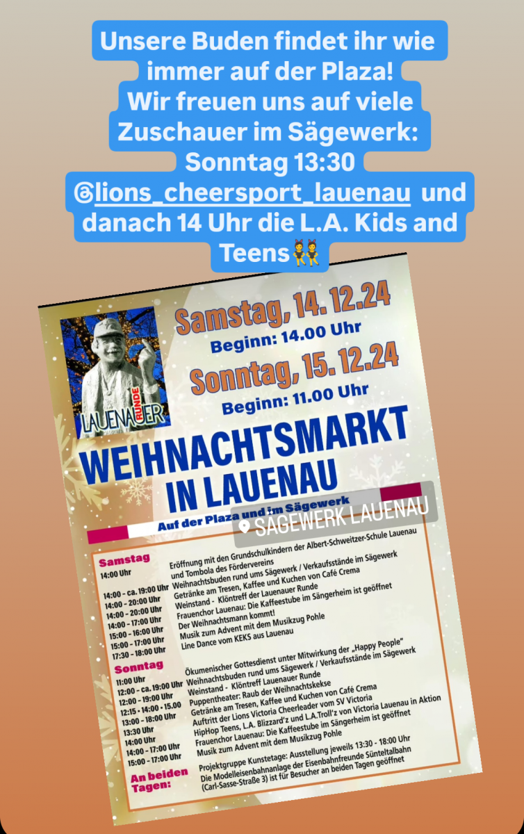 Am Sonntag freuten sich die Cheersportler, unsere Victoria Lions, auf viele Zuschauer bei ihrem Auftritt um 13:30 Uhr im Sägewerk, gleich anschließend um 14 Uhr erwartete uns dann die weihnachtliche Choreographie der L.A. Kids and Teens, unserer HipHop TänzerInnen!
