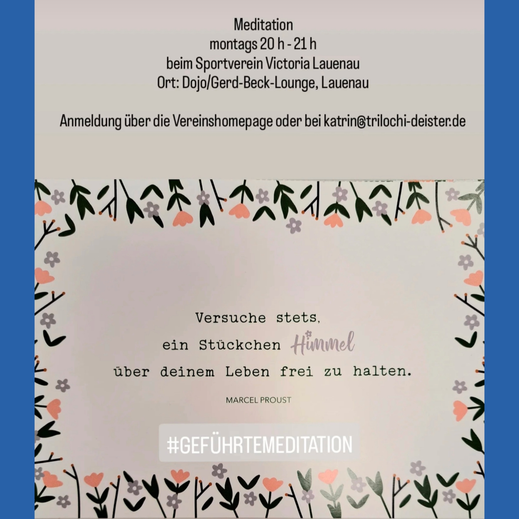 NEU: Geführte Meditation mit Katrin Dittrich, ab sofort immer Montags von 20-21 Uhr im Victoria DoJo, komm vorbei und probiere es aus: