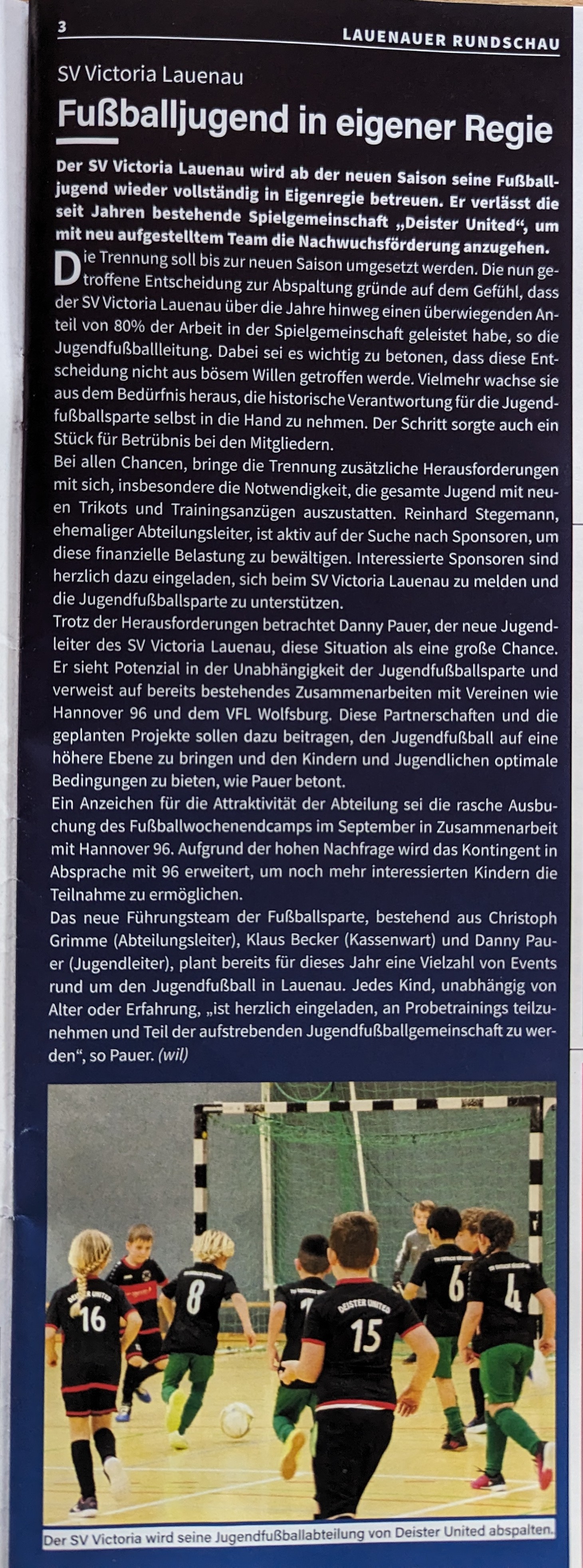 Hier könnt ihr den Bericht zur neu ausgerichteten FußballJugendarbeit in der Ausgabe März 2024 der Lauenauer Rundschau dazu lesen: