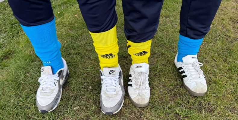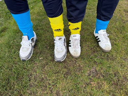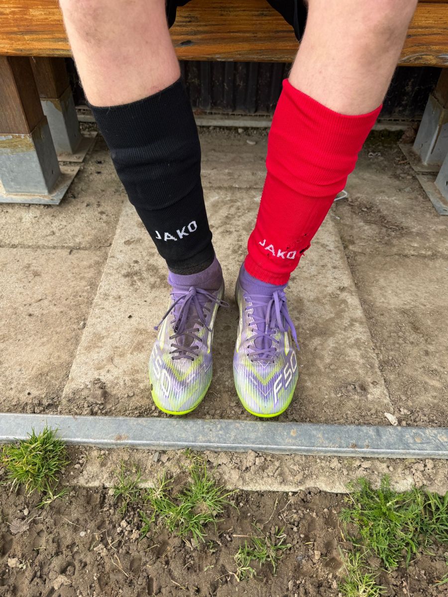 Die einladende Manschaft hatte die Idee zum 🌈 Welt-Down-Syndrom-Tag 2026 🌈 mit bunt unter den beiden Mannschaften getauschten Socken gegeneinander anzutreten. Dem haben wir uns sehr gerne angeschlossen, denn wir leben gegenseitigen Respekt auf und neben dem Platz!