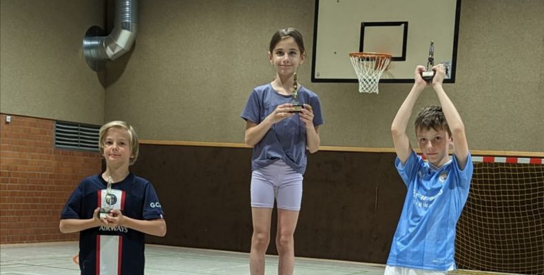 Diejenigen Kinder, die mehr erbrachte Punkte als benötigt erreichen, werden zusätzlich zur Urkunde mit einem Pokal in Form eines/r Turners/erin ausgezeichnet. Die kleinen Kids, die noch keine 6 Jahre alt sind, aber mitgemacht haben, werden ebenfalls mit einem Sticker und einer Urkunde bedacht.