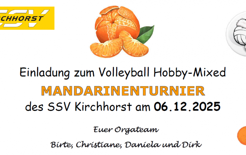 Jedes Jahr lädt der SSV Kirchhorst zum Mandarinenturnier, welches sich im Hannover-Raum großer Beliebtheit unter den Hobby-Volleyballmannschaften erfreut. Also flugs eine WhatsApp-Umfrage gestartet und sich mit Überweisung des Startgeldes einen der beliebten Startplätze in diesem adventlichen Volleyballhighlight gesichert. Am Nikolaustag 2025 also brachen unsere sieben großartigen Victoria-Reckinnen und -Recken Annabell, Jana, Leonie, Alex, Matthias, Daniel und Martin aus dem fernen Schaumburger Land in Richtung Hannovers Nordosten auf. Zehn verrückte Mannschaften wie die „Schlechtschmetterfront“ (was die späteren Turniersieger sein sollten), den „Flinken Schnecken“, die „Dreimeterträumer“, „Viva la Limmer“ und weitere kreativste Volleyballteams auf Hobbyniveau gaben sich ab 11:30 Uhr ein buntes Stelldichein in der Kirchhorster Grundschulsporthalle. Gastgeber Dirk Krüger moderierte trocken-unterhaltsam die Begrüßung und erklärte den Spielmodus