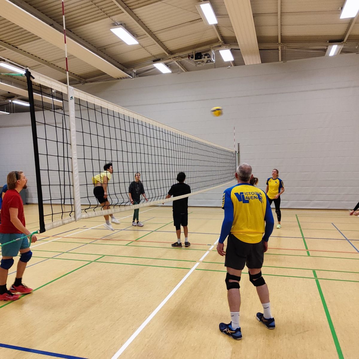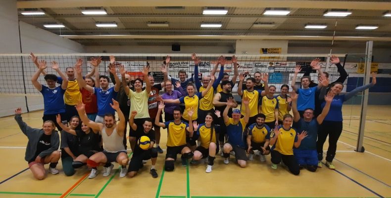 Wieviel Volleyballvolk dann am letzten Donnerstag tatsächlich auf den Hof der Victoria Arena anrollte, übertraf unsere kühnsten Erwartungen. Gleich zwei Bückeburger Teams nebst zwei mitgereisten Unterstützern (vielen Dank für Euer hopfen- und gerstenhaltiges Gastgeschenk!) brachten 50% der Stimmung in die Arena. Für die andere Stimmungshälfte sorgten mehr als bereitwillig 21 Victoria-Volleyballspielende. Damit war das vordere Hallendrittel an diesem Abend mit 33 Personen gefüllt und hatte damit fast schon Turniercharakter.