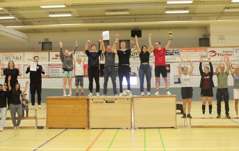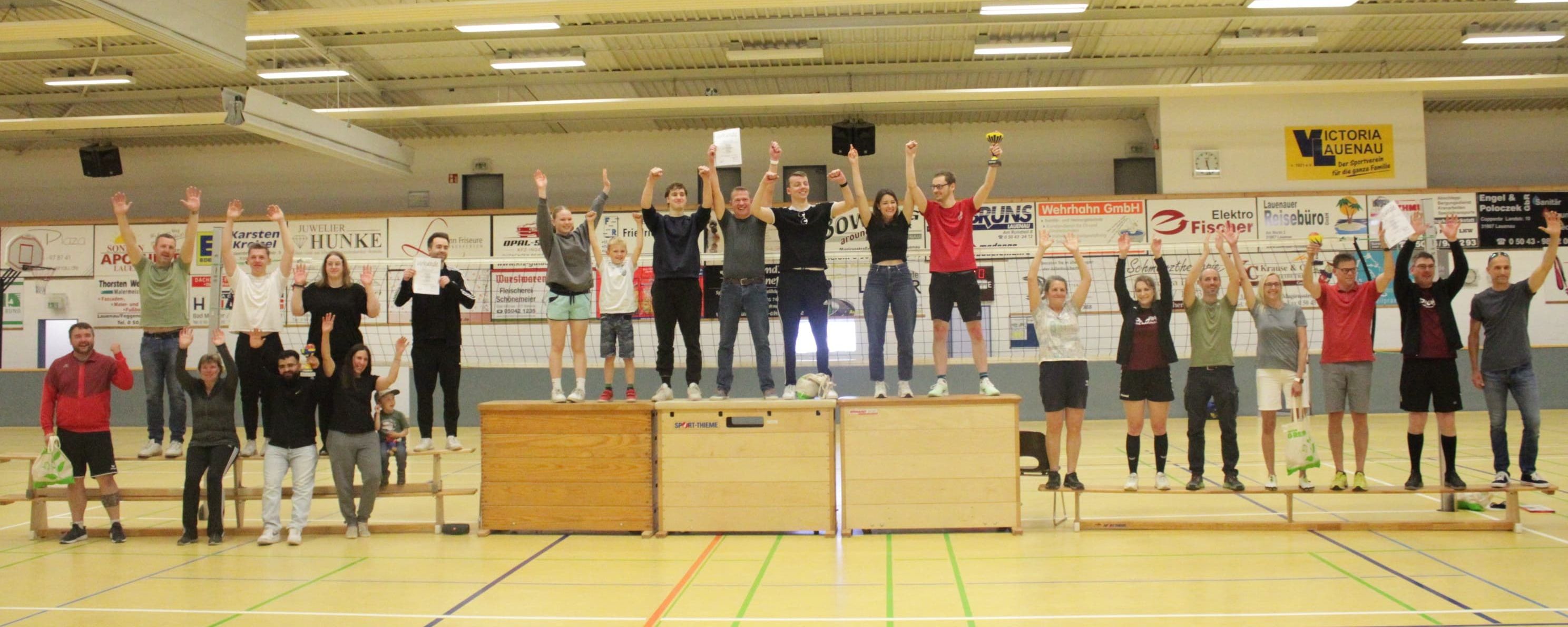 Doch blieb unser KuddelMuddel-Turnier weiterhin im Fokus der Sportschau: Eine weitere Volleyball-Konferenz wurde von Stefan Dieter Kürten nach Lauenau geschaltet, um der Ehrung aller zwölf Mannschaften live beizuwohnen. Hier die endgültigen und mit tosendem Applaus begleiteten Platzierungen: