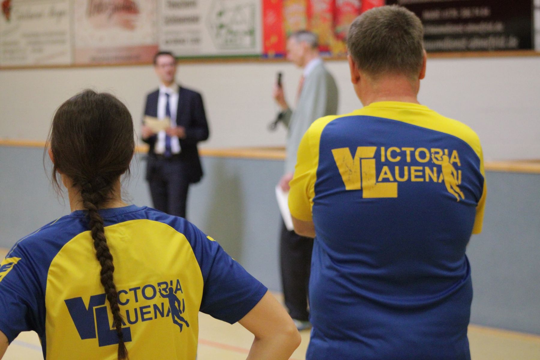09:30 Uhr – mit Eintreffen der Gästemannschaften entfaltete sich die Turnieratmosphäre vollends. Gemeinsames Warmmachen, Begrüßen von alten Bekannten, letzte Absprachen der Spielstrategien nahmen Raum und sorgten für angenehme Turnieratmosphäre, bevor um 10:00 Uhr der ARD-Sportstudio-Jingle die Mannschaften zur Begrüßung vor das Regiepult rief. Moderator Stefan Dieter Kürten stellte direkt eine Live-Schalte zum KuddelMuddel-Turnier nach Lauenau her, wo Außenreporter Matthias Dreißig den Volleyball-Abteilungspräsidenten Martin Harms als Interviewpartner gewinnen konnte. Neben gedichteten Stimmen aus dem Teilnehmerfeld (Lieber Holli, danke für Deine großartigen Ad-Hoc-Verse!) wurden der Spielablauf und die Funktion des Mittagsbuffets vorgestellt, bevor Glücksfee Linnea die Spielpaarungen für die drei Gruppen der Vorrunde ausloste und dabei jedes Team offiziell mit tosendem Applaus gebührend begrüßt wurde.