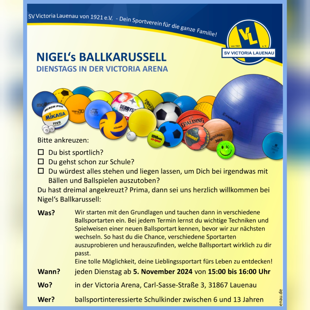 Nigel's Ballkarussell: Neu ab 5. November immer dienstags von 15-16 Uhr für Kids von 6-13 Jahren!